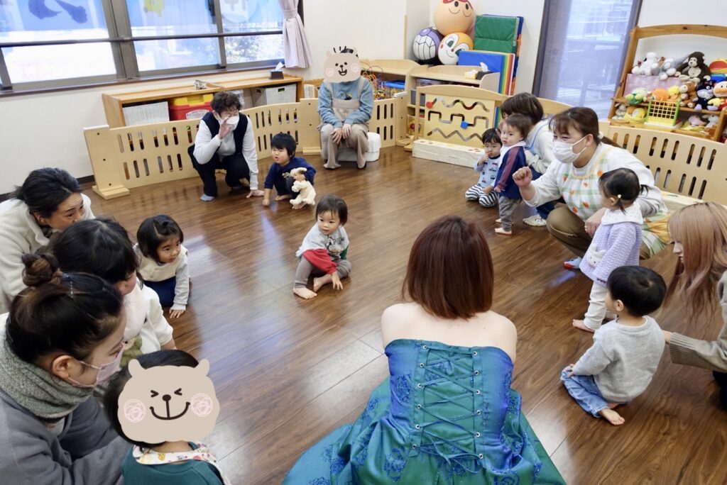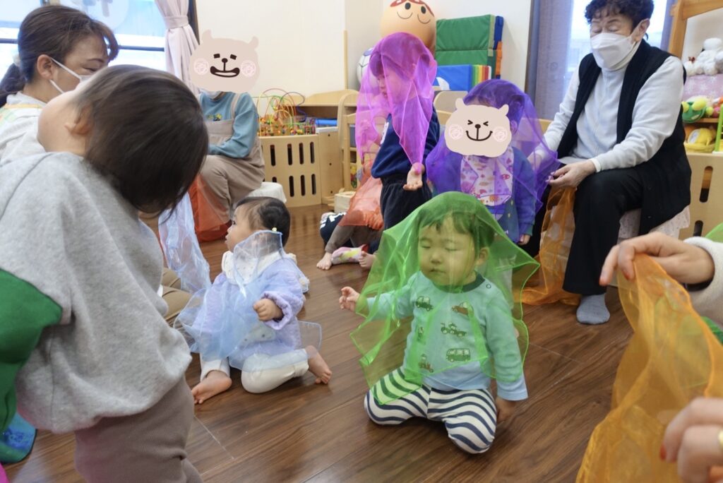 こどもたちと一緒にオーガンジーで雪を表現❄️