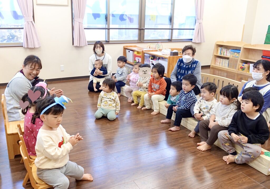 2月のお誕生会🎂✨ 2026.02.18 } ?> } ?> } ?> 今日は2月生まれのおともだちのお誕生会です🎂✨ みんなで一緒にお祝いです🎊 歌やエプロンシアター、 バースデーカードのプレゼントです(ㅅ˘︶˘)♡*。+ ひとつ、大きくなりました😆✨